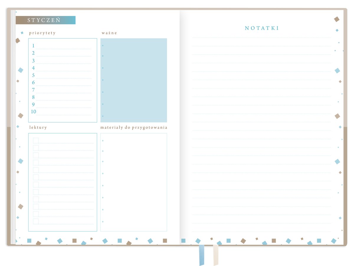 przed każdym tygodniem miejsce na wpisanie najważniejszych rzeczy do