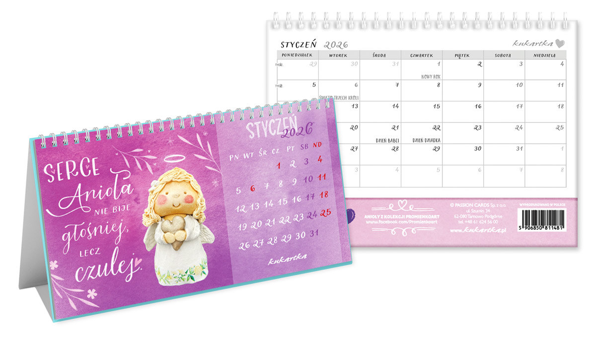 | Nazwa: | Kalendarz biurkowy 2026 miesięczny Kukartka, Dobrych Aniołów |