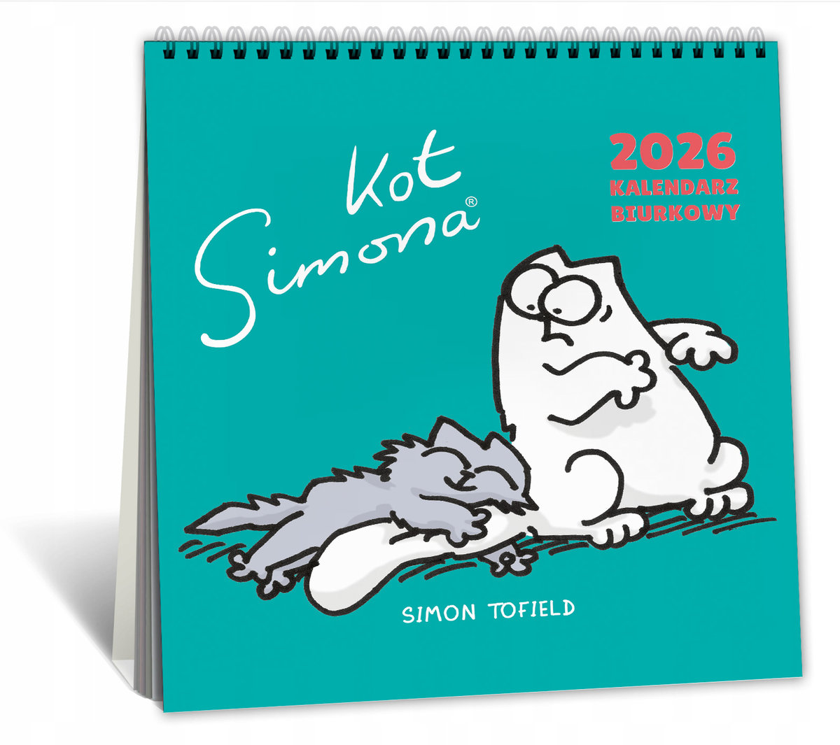 Kalendarz biurkowy Kot Simona 2026Kalendarz biurkowy Kot Simona 2026 – miesięczny kalendarz stojący spiralny z ilustracjami Kalendarz biurkowy Kot Simona 2026 to praktyczne i estetyczne ...