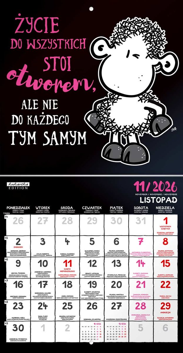 | Nazwa: | Kalendarz ścienny 2026 miesięczny Kukartka, Sheep Szczery |
