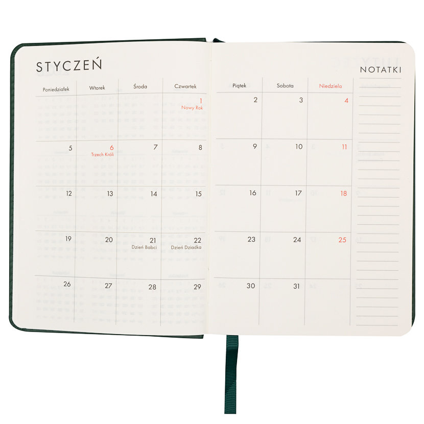 | Nazwa: | Kalendarz książkowy 2026 dzienny B6 Paperdot zielony |