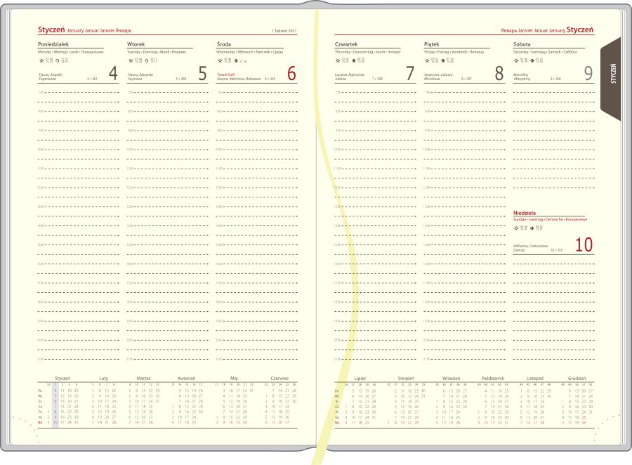 | Układ kalendarza: | tydzień na rozkładówce |