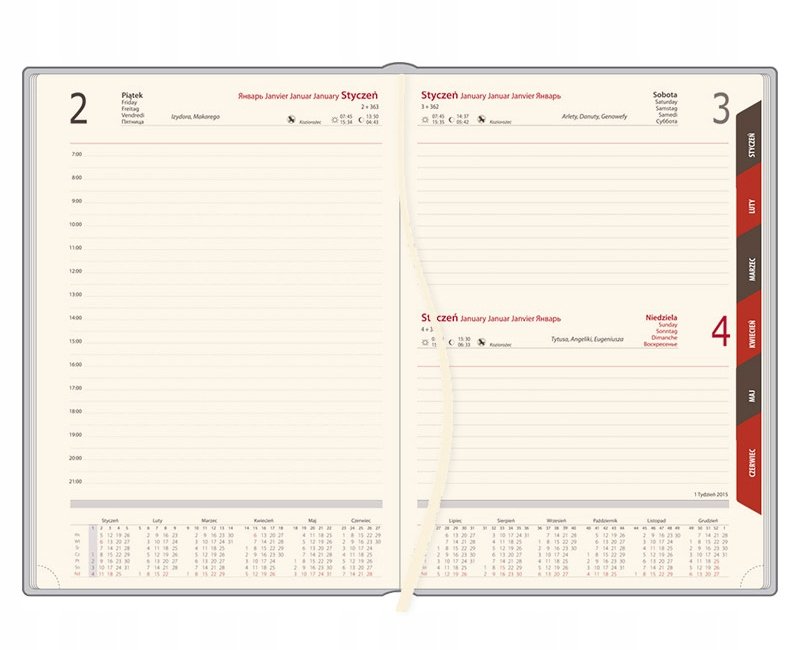 ➡ Kalendarz posiada dużo miejsca pod każdą datą, dzień podzielony na godziny, co ułatwia zapisywanie spotkań i zadań do wykonania – kalendarz książkowy z układem tygodniowym to najlepszy asystent każdej zajętej osoby. Tego rodzaju struktura pozwala natychmiast zorientować się w rozkładzie dnia, uchroni także przed spóźnianiem. Wyraźny druk i dobrej jakości, nierozmazujący papier sprawiają, że korzystanie z terminarza to czysta przyjemność i wygoda.