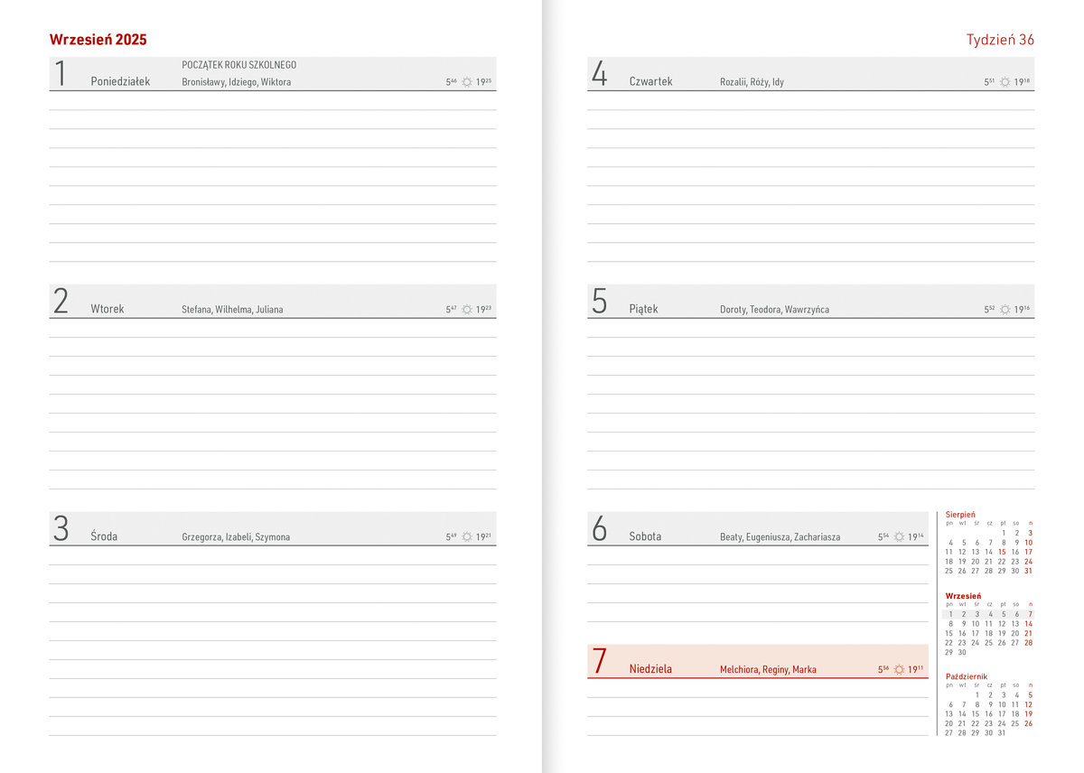 | Układ kalendarza: | tydzień na rozkładówce |