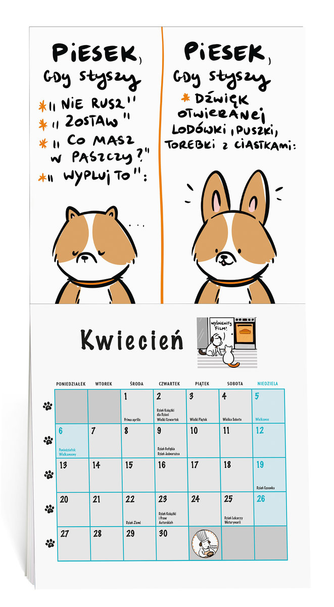 KALENDARZ PSIENNY PSOTTER 2026 - wyjątkowy kalendarz z uroczymi humorystycznymi ilustracjami psów autorstwa Anny Tylki. Format 30x30cm idealny do każdego wnętrza!