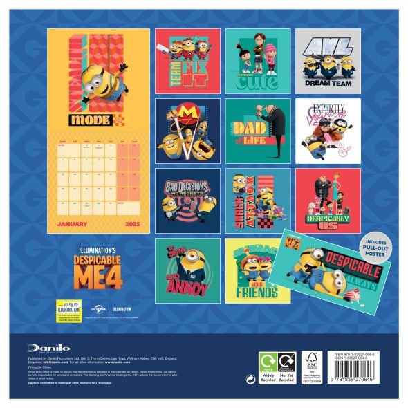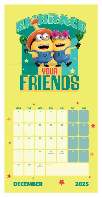 Minionki pod Przykrywką oficjalny kalendarz na ścianę na 2025 rokNumer katalogowy: DSQ26025Producent: DaniloOryginalny i licencjonowany kalendarz, posiada 12 rozkładanych stron o wymiarach 30x60 ...