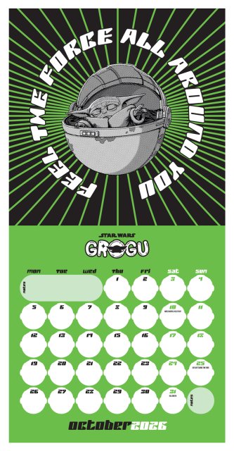 Zabierz do domu uroczego Grogu z tym oficjalnym kwadratowym kalendarzem Star Wars: The Mandalorian Grogu 2026! Ten kalendarz z 12 urzekającymi zdjęciami ulubionego dziecka z galaktyki to pozycja ...