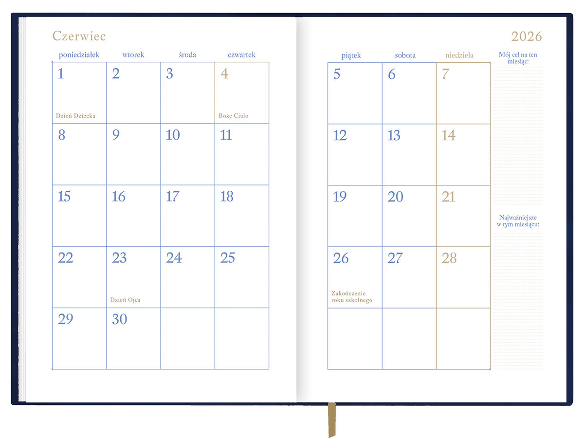 Kalendarz szkolny granatowy ze złotem 2025/2026