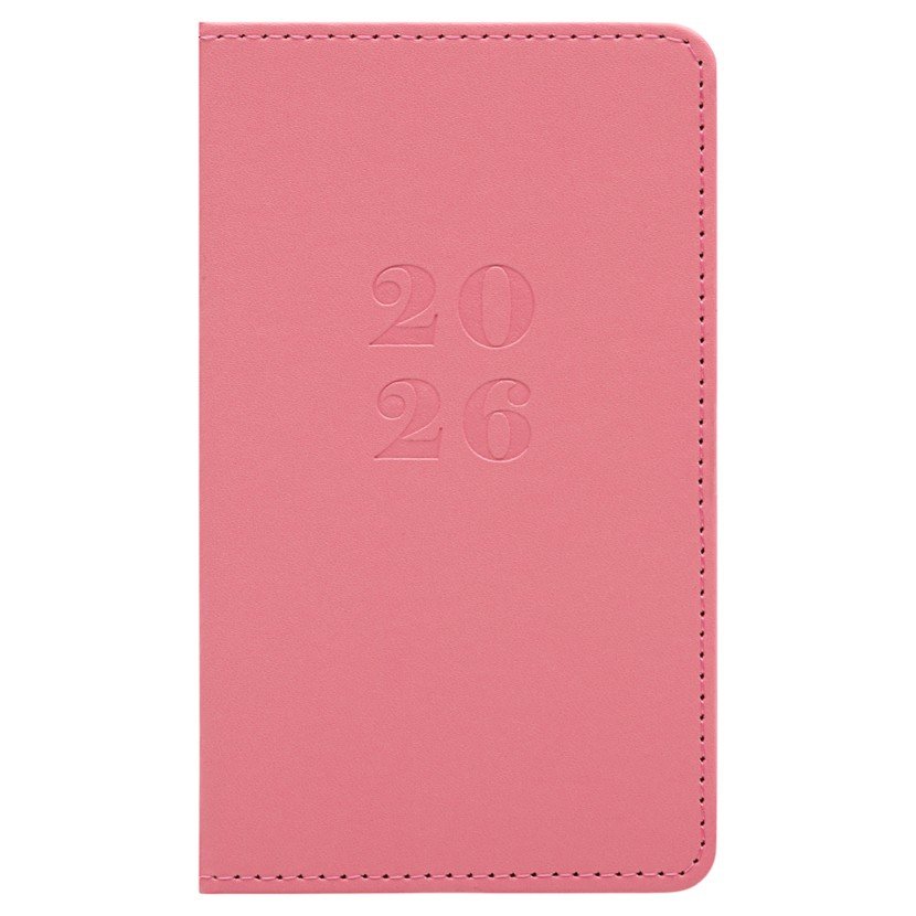 Twarda, różowa okładka nadaje kalendarzowi wyrazisty charakter i zapewnia trwałość, a prosty design sprawia, że jest czytelny i wygodny w codziennym użytkowaniu. Na szczycie kalendarza znajduje się wszyta różowa tasiemka, która pozwala na szybkie zaznaczanie stron i łatwe odnajdywanie ważnych miejsc. Format A6 (150 × 87 mm) sprawia, że kalendarz jest kompaktowy i łatwy do noszenia w torbie, plecaku czy kieszeni.