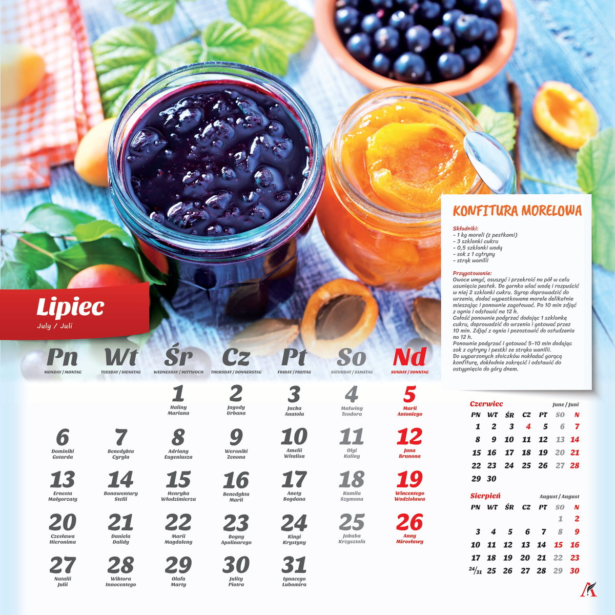 UKŁAD: miesięczny, zaznaczone imieniny, święta