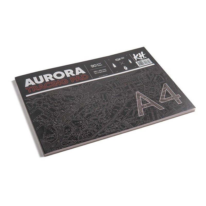 Kalka kreślarska marki Aurora. 50 arkuszy o gramaturze 90 g/m². Rozmiar: 21 x 29.7 cm (A4).