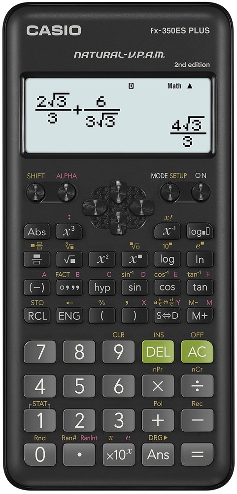 Kalkulator naukowy Casio FX 350ES PLUS 2 BOXWyświetlacz 31*96 punktowyNaturalny zapisLiczba znaków/linii 15/1+10/1Wyświetlacznie wykładnika mantysy 10+2Funkcja powtarzaniaPamięć 9 zmiennych252 ...