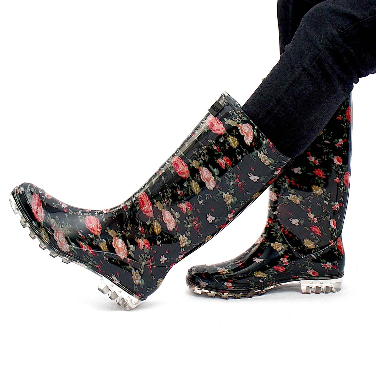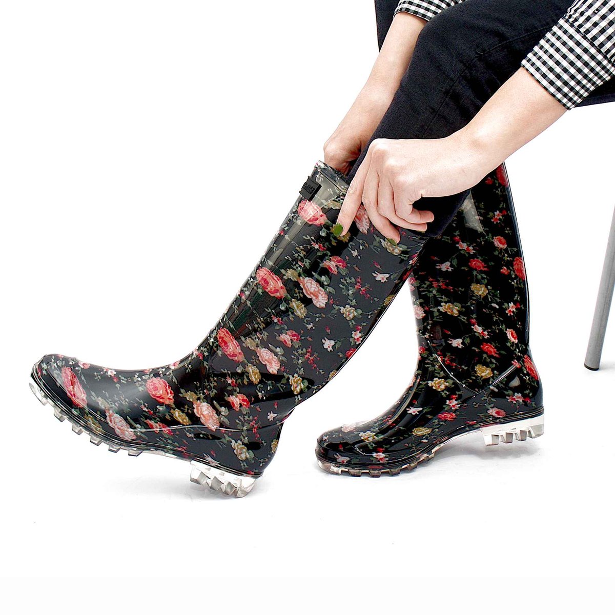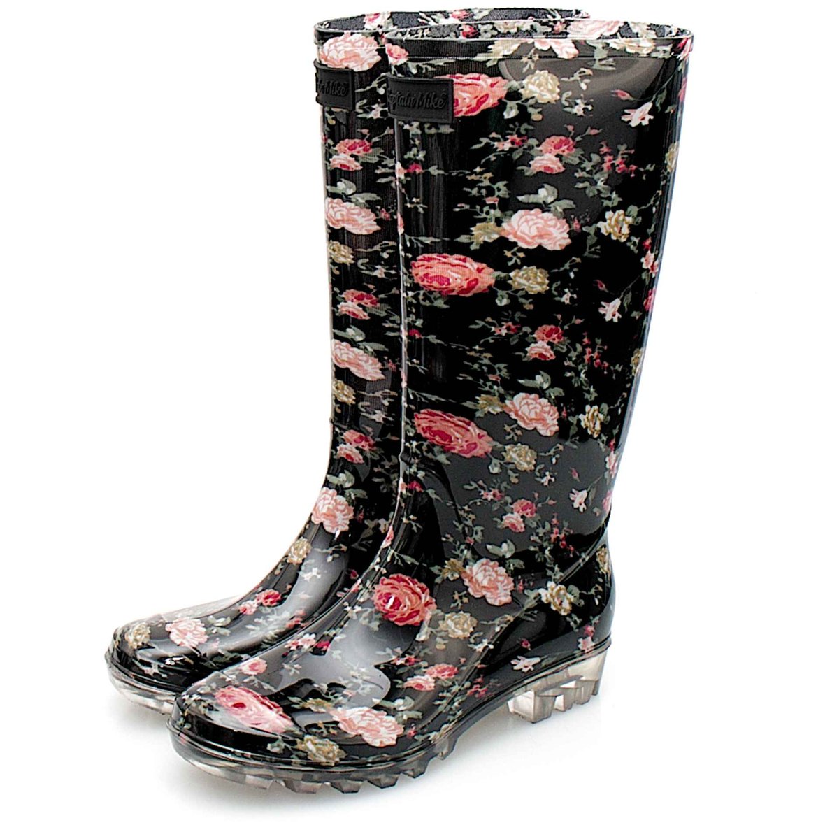 Damskie kalosze marki Captain Mike® idealne na spacer po mieście i lesie.Kolor: czarny w kwiatySkład: wkładka z miękką wyściółką z tkaniny, z zewnątrz wodoodporne, impregnowane PVC