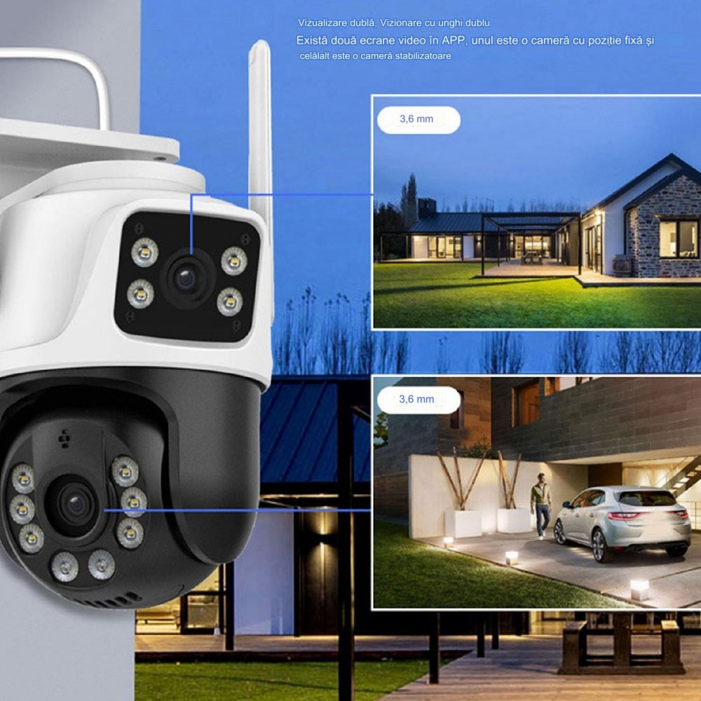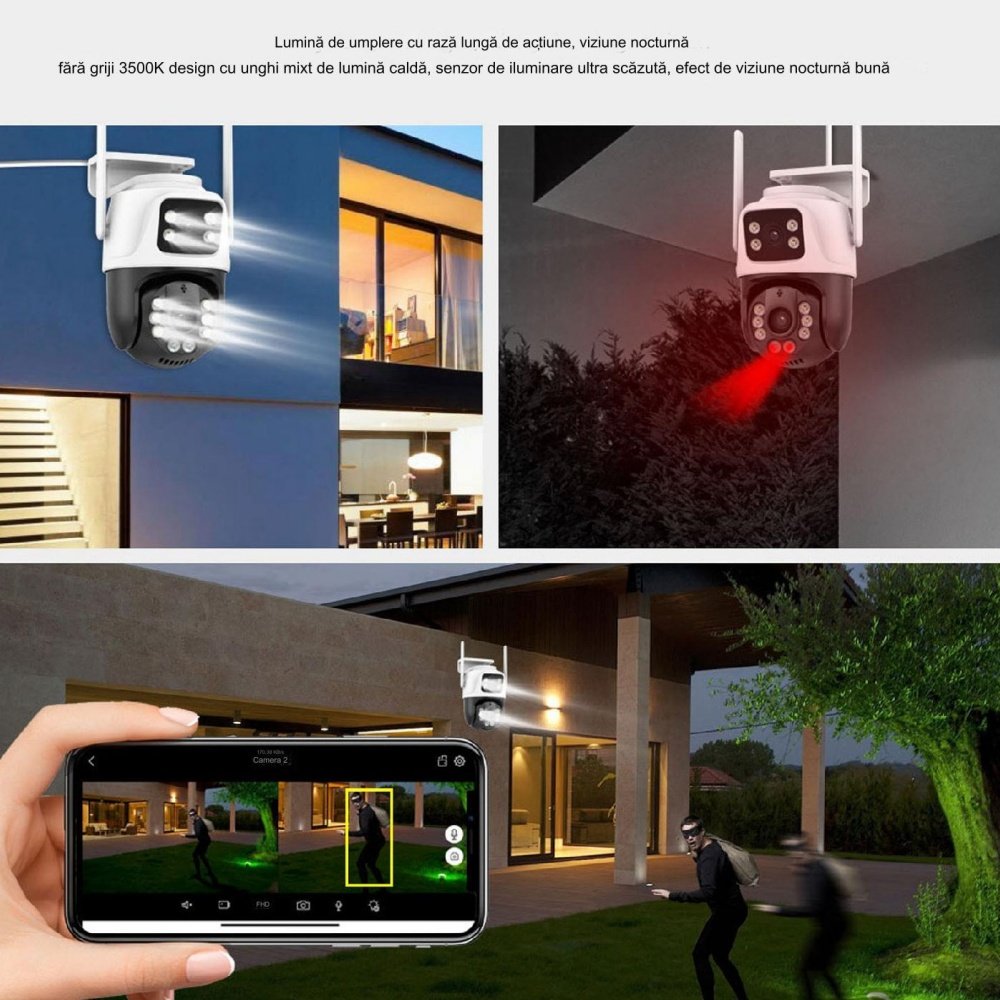 | Nazwa: | Kamera bezpieczeństwa z podwójnym obiektywem WiFi IP66 z noktowizorem i wykrywaniem ruchu, zewnętrzna kamera monitorująca |