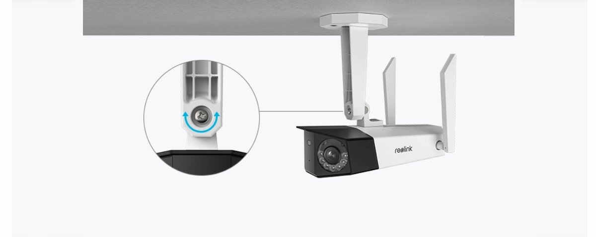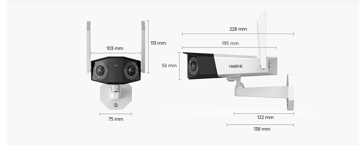 - Załączone wyposażenie: Kamera Reolink Duo 2, Anteny 2 szt, Zasilacz, Przewód zasilający 4,5 metra, Wspornik do montażu do ściany i do sufitu, Instrukcja, | Naklejka ostrzegawcza