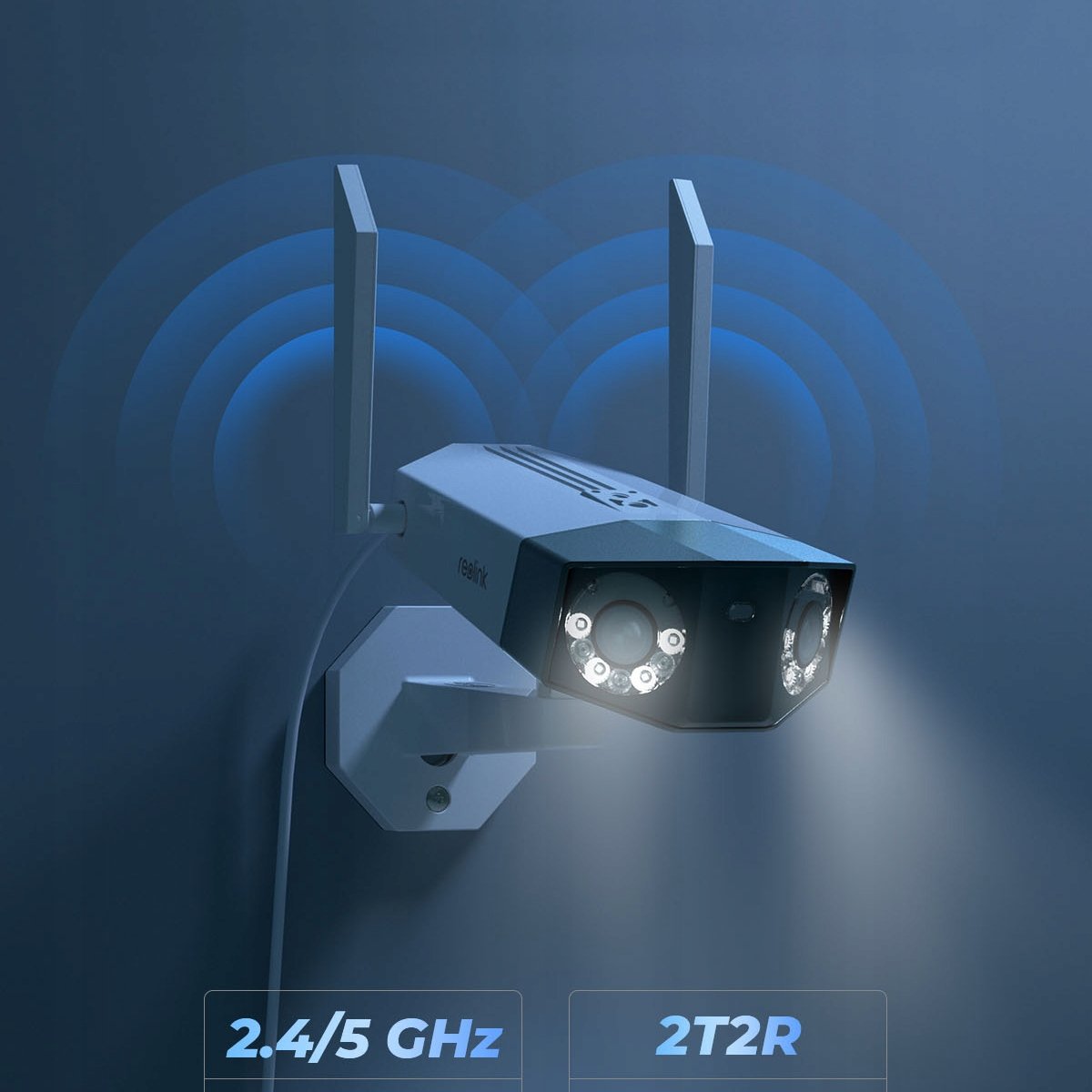 - Dwie anteny o wzmocnionej sile sygnału pozwalają na jeszcze większy zasięg niż kamery z wbudowana anteną