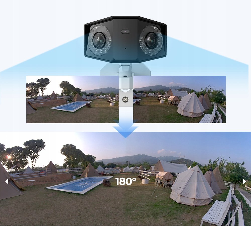 - Podwójny obiektyw - szeroki kąt widzenia - 180° w poziomie i 60° w pionie