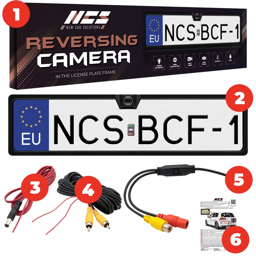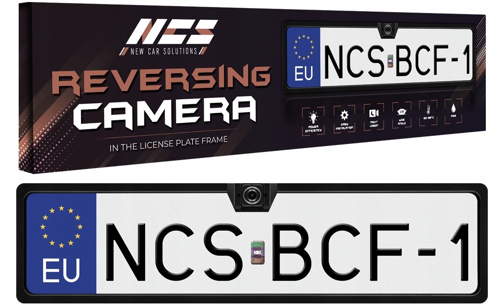 2️⃣Kamera cofania w ramce tablicy rejestracyjnej NCS BCF-1.