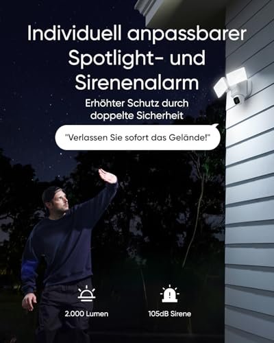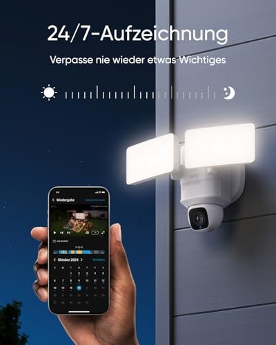 Kamera Floodlight E30 jest wyposażona w silny reflektor o mocy 2000 lumenów, co pozwala na doskonałe oświetlenie obszaru wokół kamery. Dzięki połączeniu z siecią Wi-Fi 2.4 GHz, kamera umożliwia zdalny dostęp do obrazu w czasie rzeczywistym oraz nagrywanie materiałów 24/7.