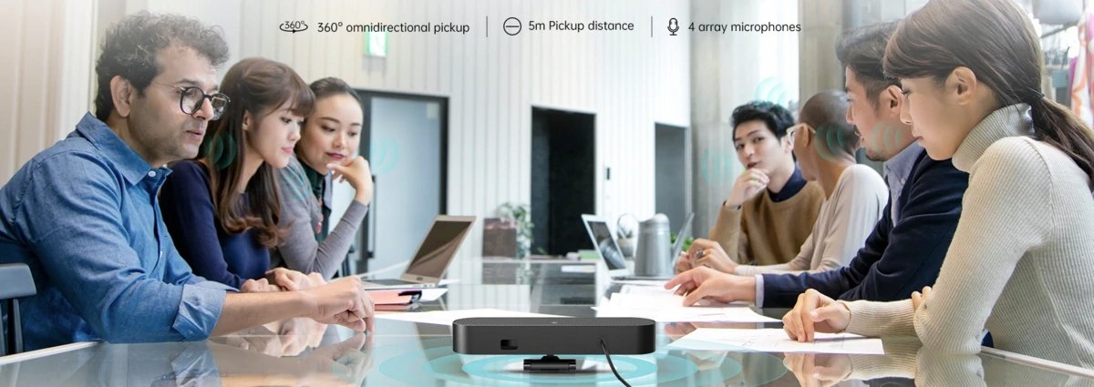 Kamera do wideokonferencji posiada wbudowane 4 wysoce precyzyjne mikrofony cyfrowe, oparte na algorytmie kształtowania wiązki, które sprawiają, że dźwięk podczas spotkania będzie czysty i wyraźny.