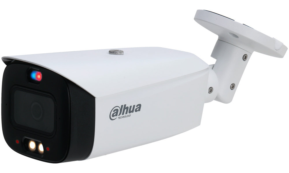 Model działający w systemie IP z obiektywem stałoogniskowym 2.8 mm. Kamera posiada przetwornik 1/2.7" Progressive Scan CMOS, który pracuje w rozdzielczości 2960 x 1668(5Mpx). Kompresja danych kamery działa w standardzie H.265 / H.265+ / H.264 / H.264+ / MJPEG. Funkcja WDR 120 dB poprawiająca dynamikę kamery wydobywa większą ilość szczegółów z kontrastowego planu obserwacyjnego. Urządzenie posiada również wbudowane 2 promienniki światła białego oraz 2 promienniki IR z zasięgiem działania do 30m. Umożliwia pracę w 3 trybach oświetlacza-tylko IR, tylko światło białe lub tryb Smart - IR + światło białe. Ponadto urządzenie posiada funkcje ICR, AWB, AGC, BLC, HLC, 3D NR, ROL które dostosowują działanie kamery do panujących warunków oraz znacznie poprawiają jakość obrazu. Obudowa kamery stworzona została w standardzie IP67. Kamera zasilana jest napięciem 12V DC / PoE.