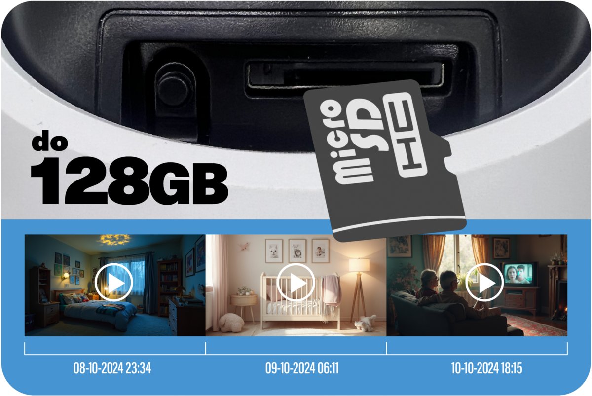 Sterowanie odbywa się za pomocą intuicyjnego interfejsu w aplikacji, co pozwala szybko reagować na każdy ruch czy dźwięk. Funkcja PTZ to idealne rozwiązanie w roli elektronicznej niani – wystarczy kilka kliknięć, aby sprawdzić, czy dziecko śpi, czy bawi się po drugiej stronie pokoju.
