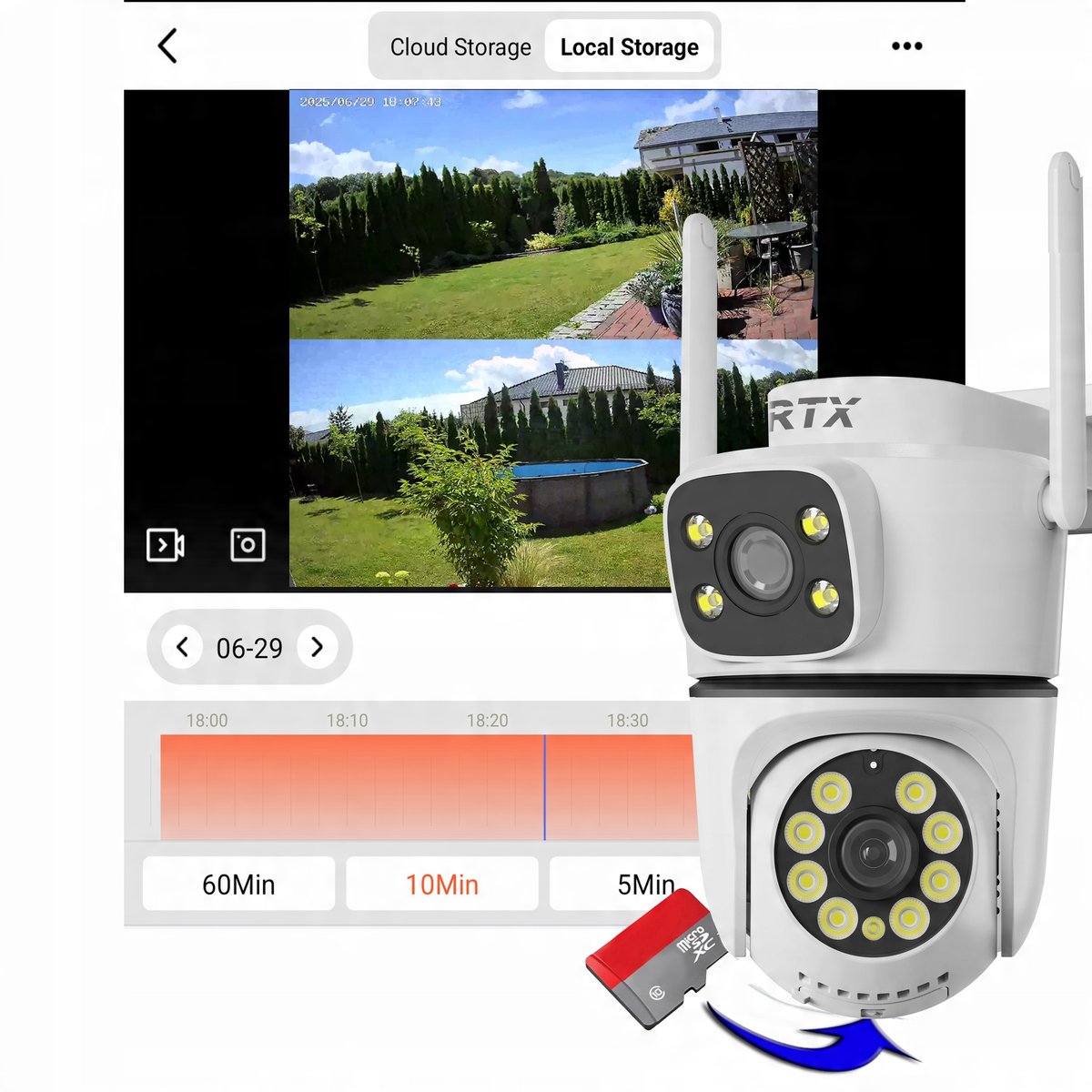 Kamera RTX IP Tuya Zewnętrzna Obrotowa 2-way Audio Zapis SD # 2 OBIEKTYWY RTX RTX SmartCam Ai35Inteligentna zewnętrzna kamera IP Wi-Fi P2P z funkcją widzenia w kolorze w ...