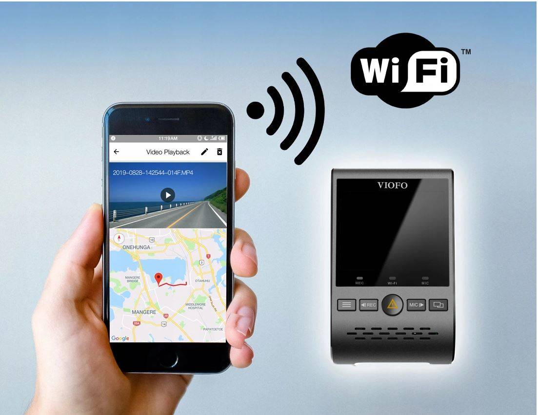 Jako nowość w kamerze A129 PLUS DUO-G został wbudowany wydajny moduł WIFI pracujący w dwóch pasmach: 2.4Ghz oraz 5Ghz. Dzięki temu kamerą możemy sterować za pomocą dedykowanej aplikacji VIOFO, która jest darmowa na systemy Android oraz iOS.