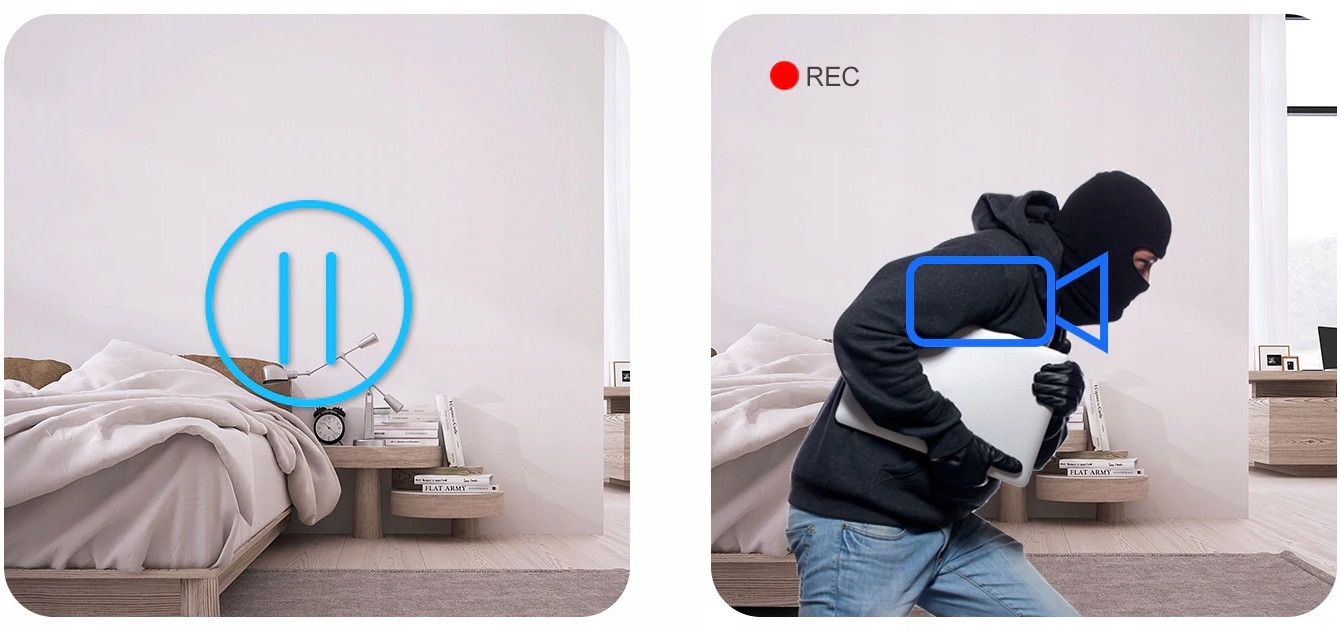 ⏹️     Obiektyw ukryty w budziki nie jest widoczny zarówno w ciągu dnia jak i w nocy.