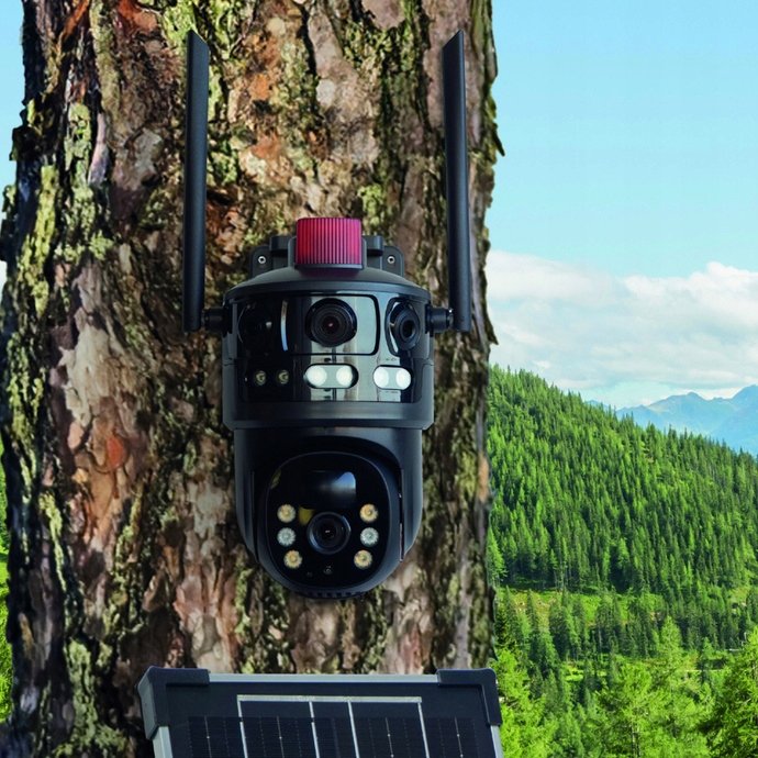 Kamera zewnętrzna podwójna 4G 3MP+3MP z panelem słonecznym Technaxx TX-329 to innowacyjne urządzenie, które zapewnia doskonałą ochronę Twojej posesji dzięki zaawansowanej technologii monitorowania. Ta wydajna kamera z podwójnym obiektywem o rozdzielczości 6MP (3MP + 3MP) dostarcza szczegółowe i wyraźne obrazy zarówno w ciągu dnia, jak i w nocy, wyposażona w tryb nocny oraz diod LED IR, co czyni ją idealnym rozwiązaniem do monitoringu na zewnątrz.