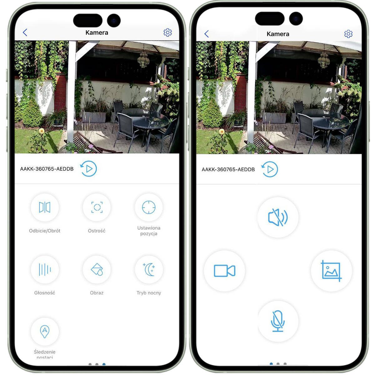 Kamera umożliwia obracanie w poziomie od 0° do 355° oraz w pionie od 0° do 90°. Dzięki temu można zdalnie kierować kamerą w różne miejsca i przybliżać obraz w celu lepszej analizy. Funkcjonalność ta jest dostępna zarówno w aplikacji mobilnej, jak i na komputerze.