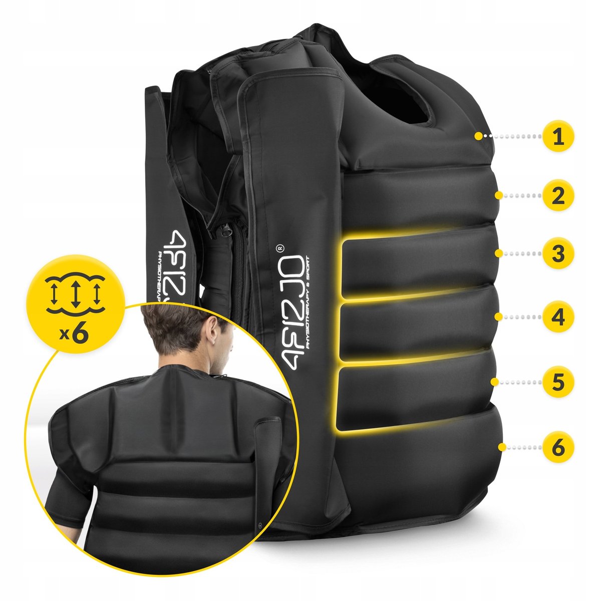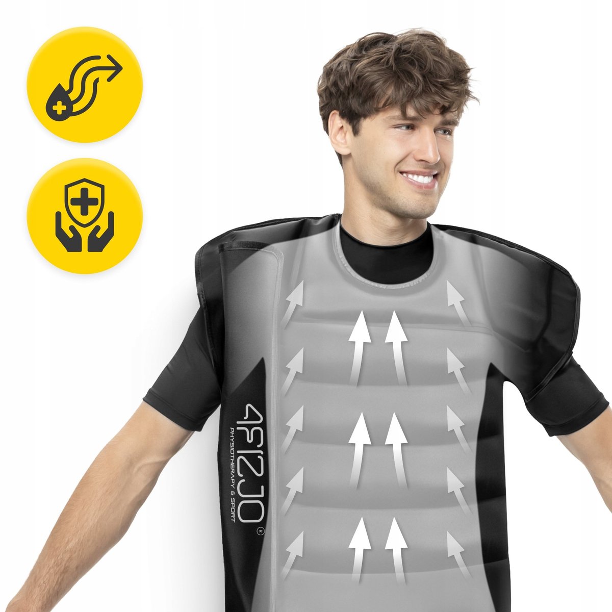 Wznieś drenaż limfatyczny swojego ciała na jeszcze wyższy poziom! Postaw na kamizelkę do presoterapii i zadbaj o klatkę piersiową, brzuch i plecy w takim samym stopniu, jak dbasz o swoje nogi. Drenaż górnych partii ciała usprawnia krążenie krwi i limfy, a także przyspiesza proces regeneracji mięśni nie tylko u osób aktywnych sportowo, ale także u wszystkich tych, którzy pracują fizycznie.Kamizelka do presoterapii C6 4FIZJO przeznaczona jest do aparatów do drenażu limfatycznego 4FIZJO z 6 komorami w urządzeniu: MED C6 oraz PRO C6.