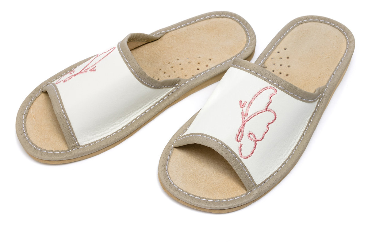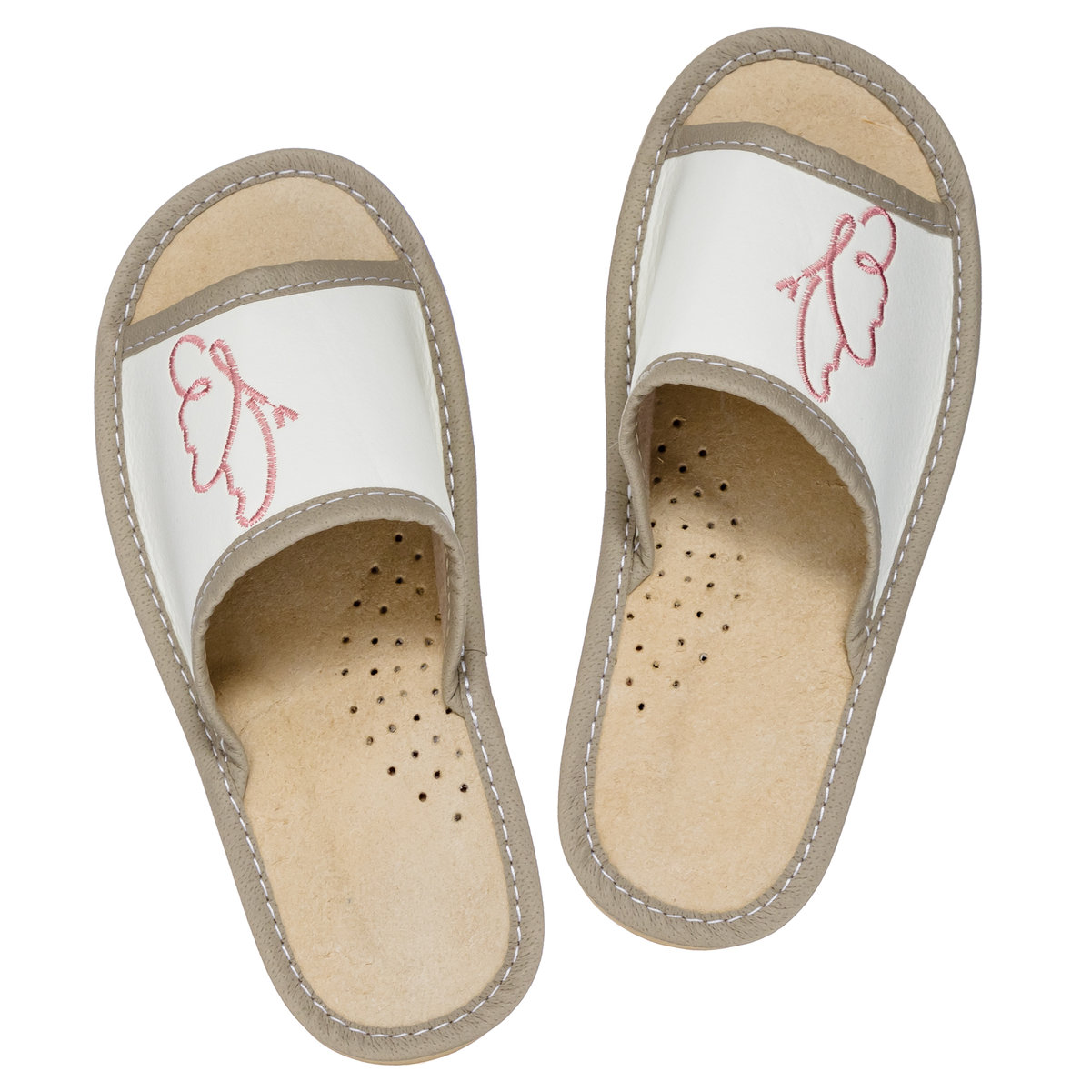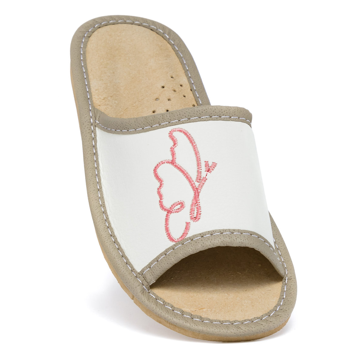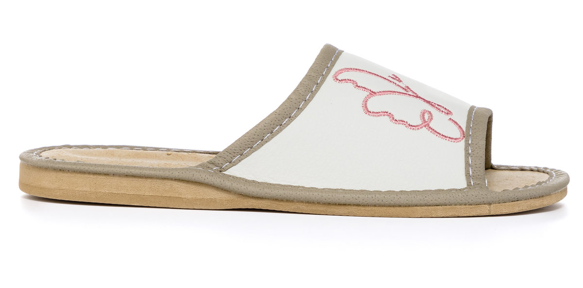 Materiał zewnętrzny: skóra ekologicznaMateriał wkładki: skóra naturalnaMateriał podeszwy: guma EVA Kolor: biały, różowyWysokość koturny/podeszwy: ok. 1,3 cmPrzedstawiamy nasze urocze kapcie ...