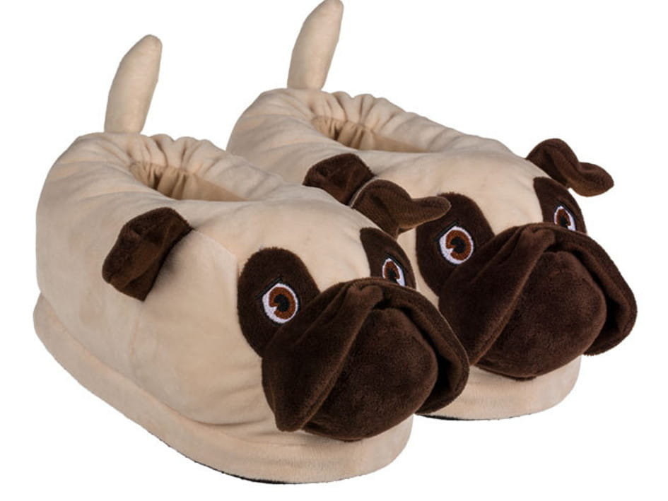 Mięciutkie, przytulne kapcie w kształcie uroczych psów - mopsów, których nie będziecie mieli ochoty zdejmować z nóg. Specjalna powłoka na podeszwie sprawia, że kapcie się nie ślizgają. Wesoły wzór wprowadza wiele radości każdemu użytkownikowi i miłośnikowi psów. Dostępne w rozmiarach 31-36.