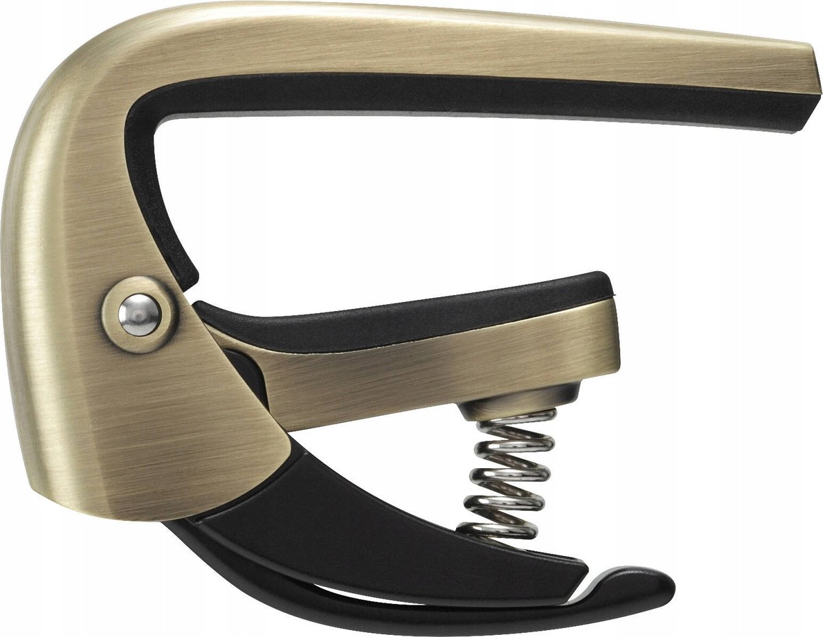 Dodatkowo, kapodaster ten cechuje się eleganckim złotym wykończeniem, co nie tylko dodaje mu estetyki, ale także czyni go atrakcyjnym elementem wyposażenia dla muzyków, którzy cenią sobie nie tylko funkcjonalność, ale również wygląd swojego sprzętu. Dzięki odpowiednim wymiarom - długość 75 mm, szerokość 55 mm, głębokość 15 mm i niewielka waga 0,068 kg - kapodaster jest wygodny w użytkowaniu i przechowywaniu, co stanowi istotną zaletę podczas koncertów oraz podróży.