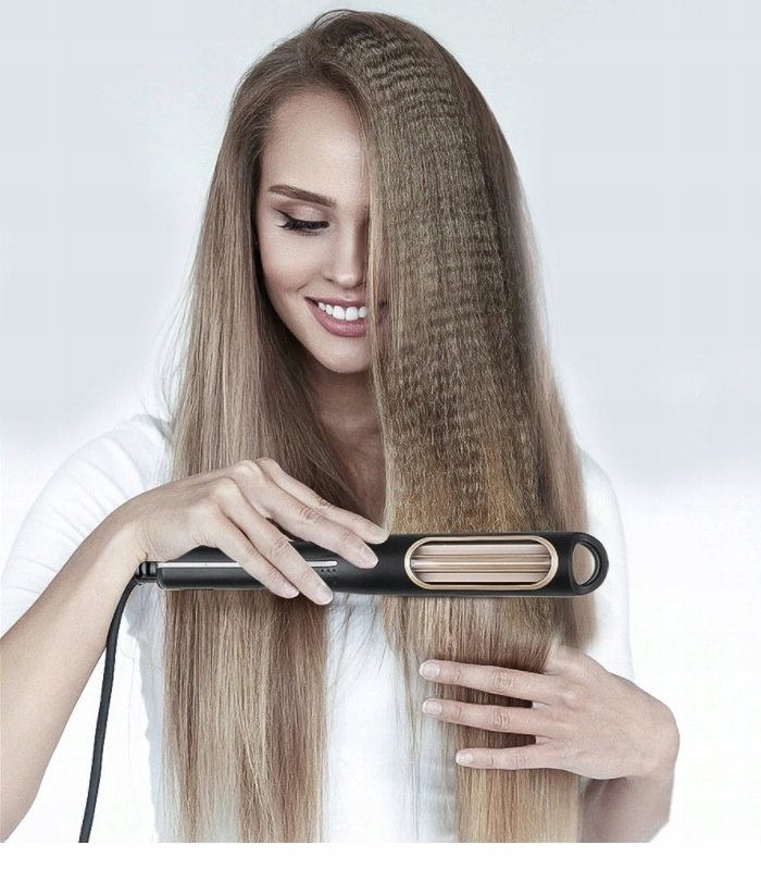 Płytki w karbownicy są automatyczne, po zamknięciu urządzenia obracają się wokół własnej osi o 360 stopni. Dzięki temu wystarczy tylko powoli przesuwać urządzenie w dół, a karbownica wystylizuje nasze włosy z góry aż do dołu - bezpiecznie i szybko.