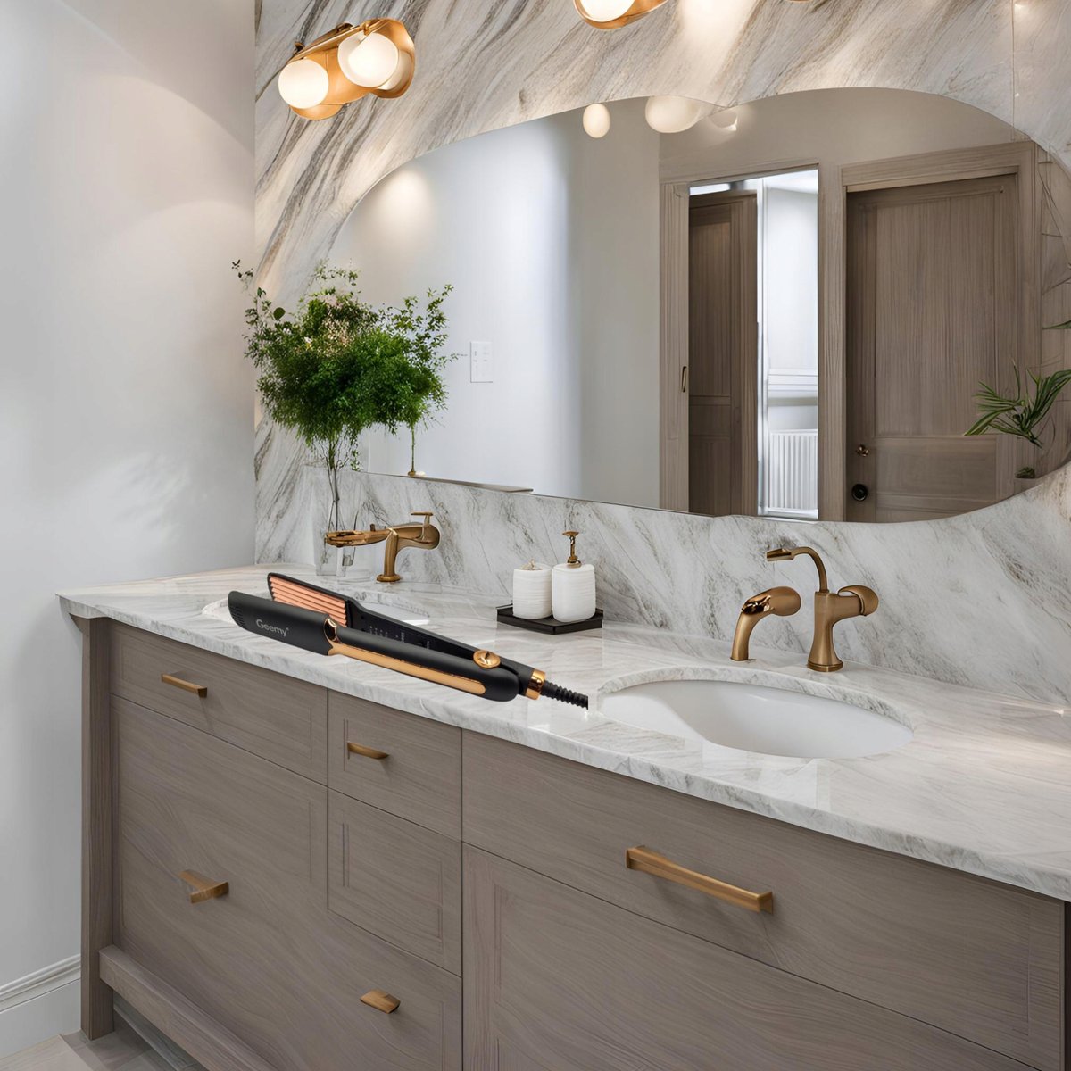 Czarne wykończenie z złotymi wstawkami nie tylko przyciąga wzrok, ale również dodaje nowoczesnego stylu do Twojej łazienki. Stylowa karbownica staje się nie tylko narzędziem, ale również eleganckim dodatkiem, który wzbogaca Twoje codzienne rytuały pielęgnacyjne