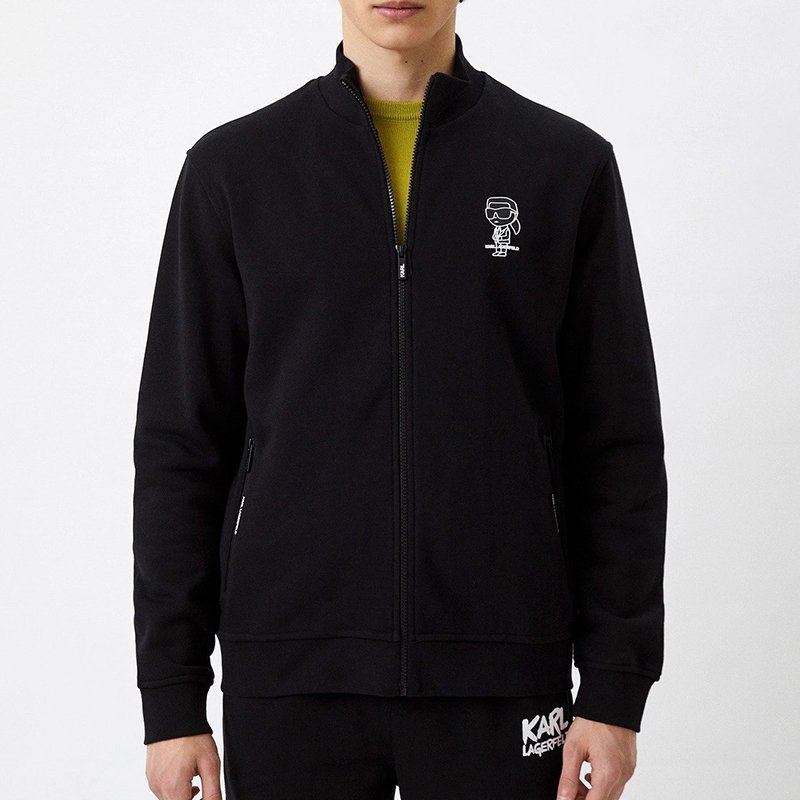 kolor czarny wykonane z 87% bawełna, 13% poliester kolekcja męska rozpinana bez kaptura kołnierz stójka dwie boczne kieszenie zapinane na zamek logo projektanta na przodzie