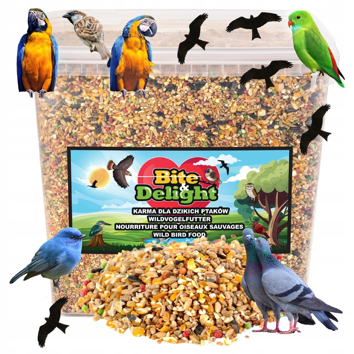 Karma dla dzikich ptaków dzikich zimujących pokarm całoroczny 10l Karma dla dzikich ptaków to mieszanka najwyższej jakości nasion, zaprojektowana, aby ...
