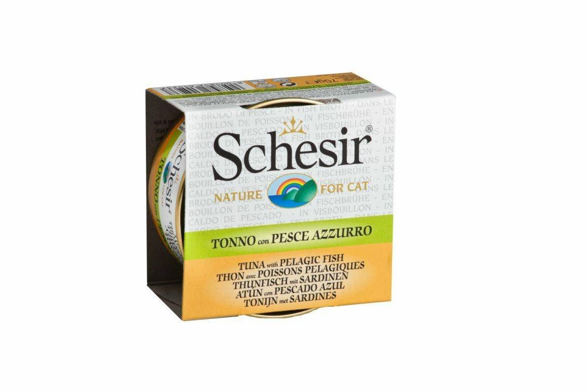 | Nazwa: | Karma mokra dla kota SCHESIR, tuńczyk z sardynkami w bulionie, 70 g |