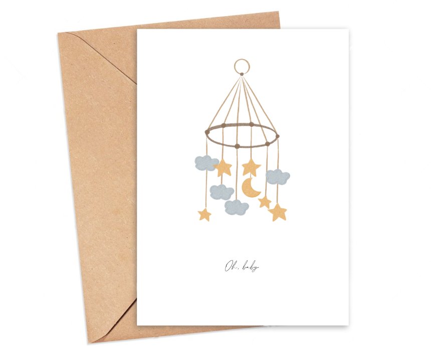 Karnet okolicznościowy z autorską grafiką. Pocztówka pusta w środku z miejscem na wypisanie treści. Format: 12 cm x 17 cm Koperta eko kraft Papier ekologiczny z lekką fakturą