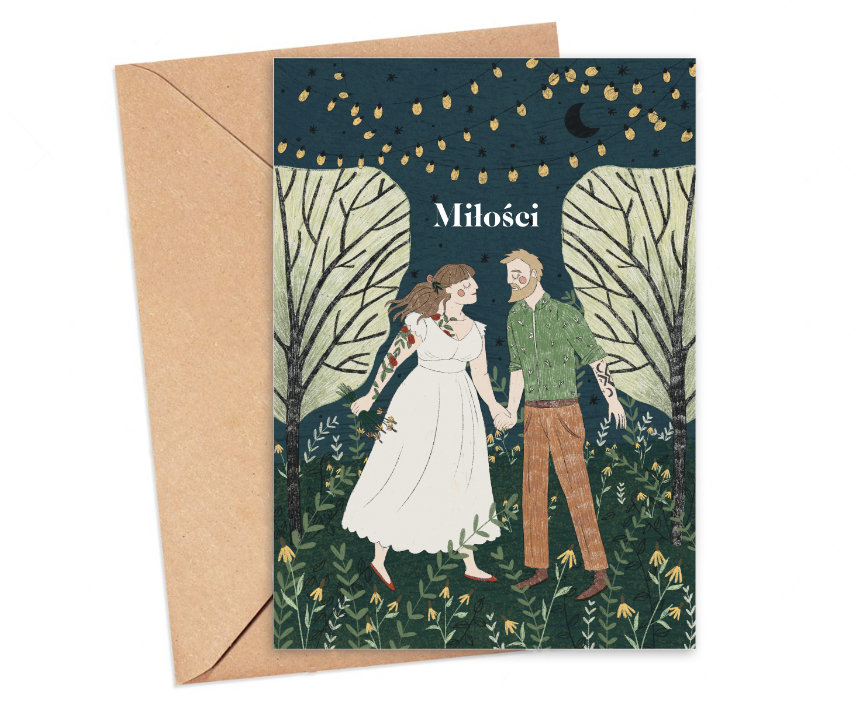 Karnet okolicznościowy z autorską grafiką. Pocztówka pusta w środku z miejscem na wypisanie treści. Format: 12 cm x 17 cm Koperta eko kraft Papier ekologiczny z lekką fakturą