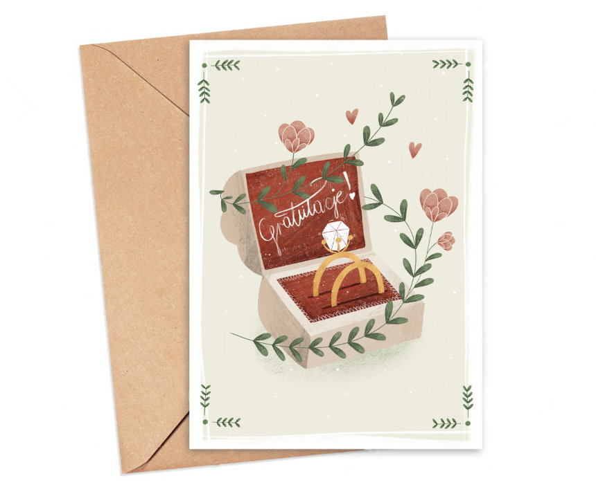 Karnet okolicznościowy z autorską grafiką. Pocztówka pusta w środku z miejscem na wypisanie treści. Format: 12 cm x 17 cm Koperta eko kraft Papier ekologiczny z lekką fakturą
