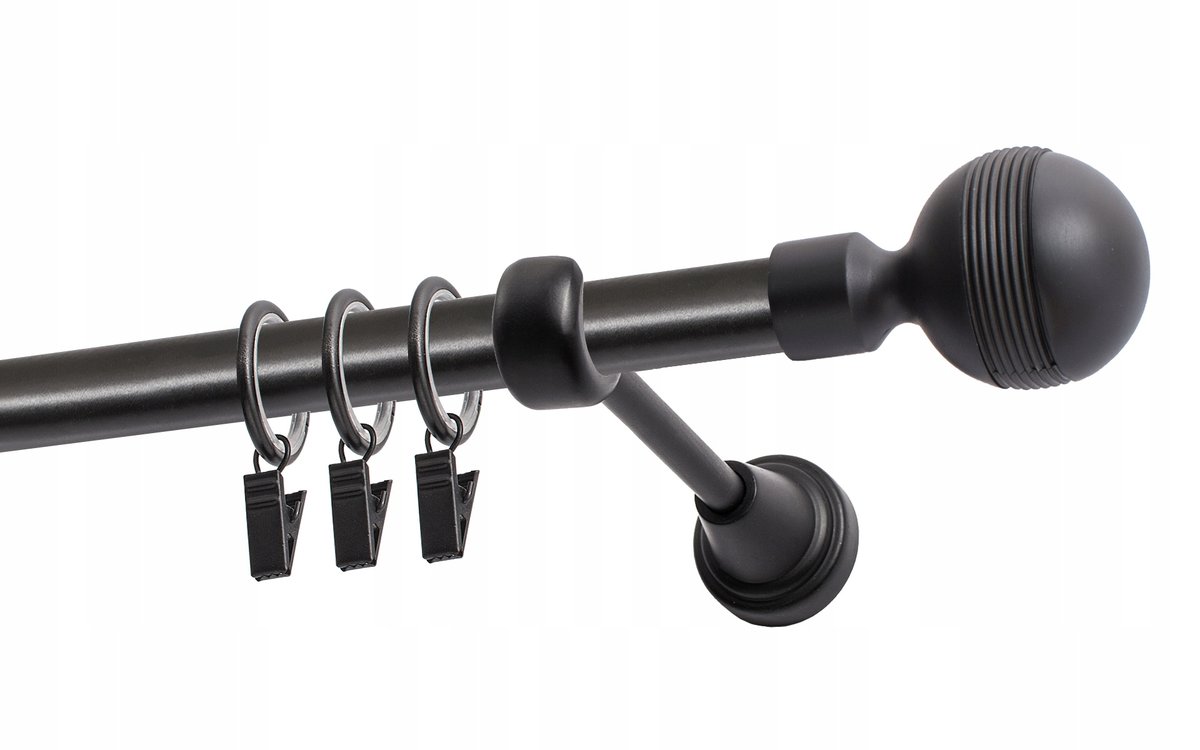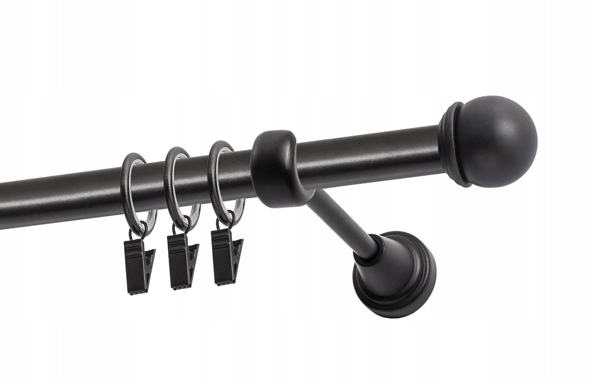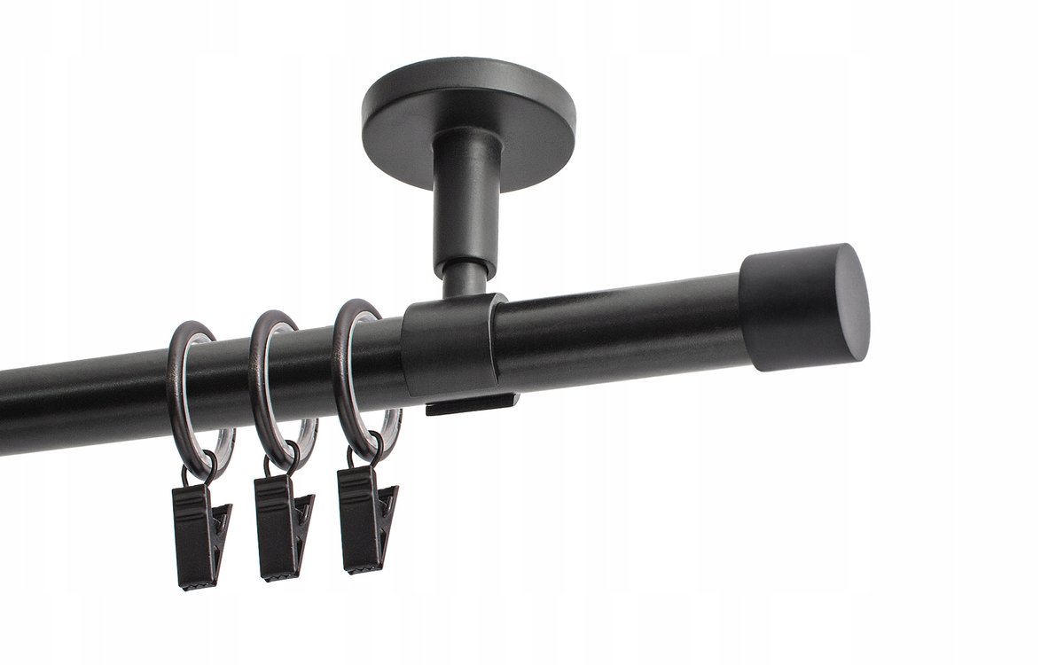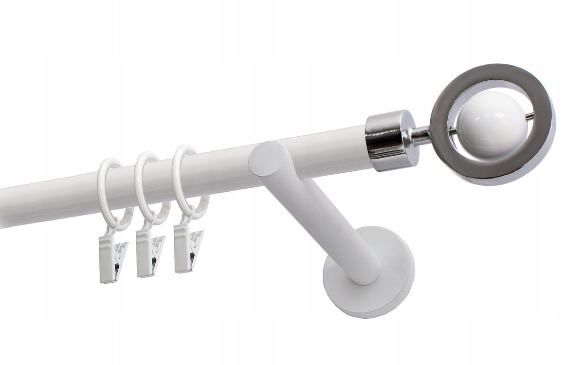 Karnisz o średnicy 19 mm z kółkami. Pojedynczy karnisz doskonale prezentuje się we wnętrzach mieszkalnych. Można go zamontować wszędzie tam, gdzie chce się powiesić firany lub zasłony za pomocą żabek