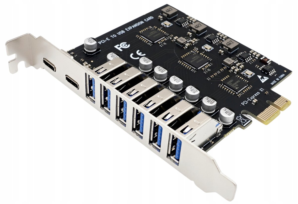 Właśnie zrecenzowałem Karta adapter do komputera PCI PCIe 1X na 8x USB (6A+2C) 5Gbps Gen2