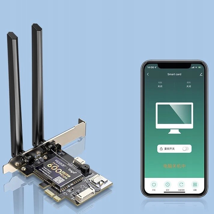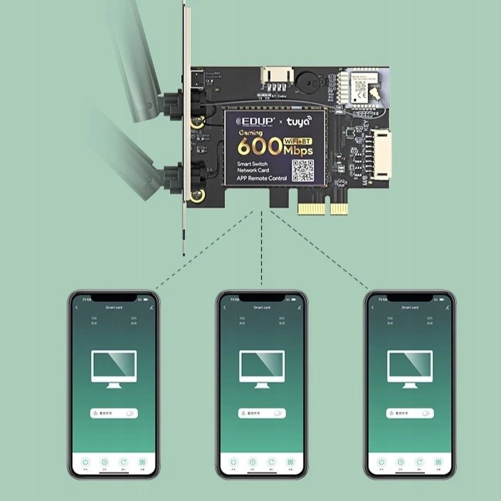 Karta sieciowa EP-AC600SW oferuje możliwość zdalnego sterowania komputerem stacjonarnym za pomocą aplikacji EDUP Smart lub Tuya Smart.