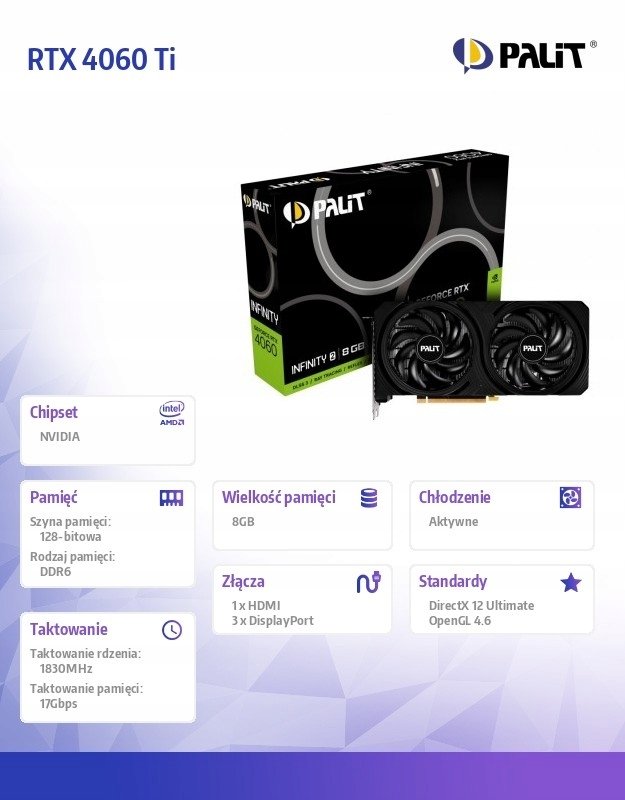 - Cechy: RTX 4060;8GB
