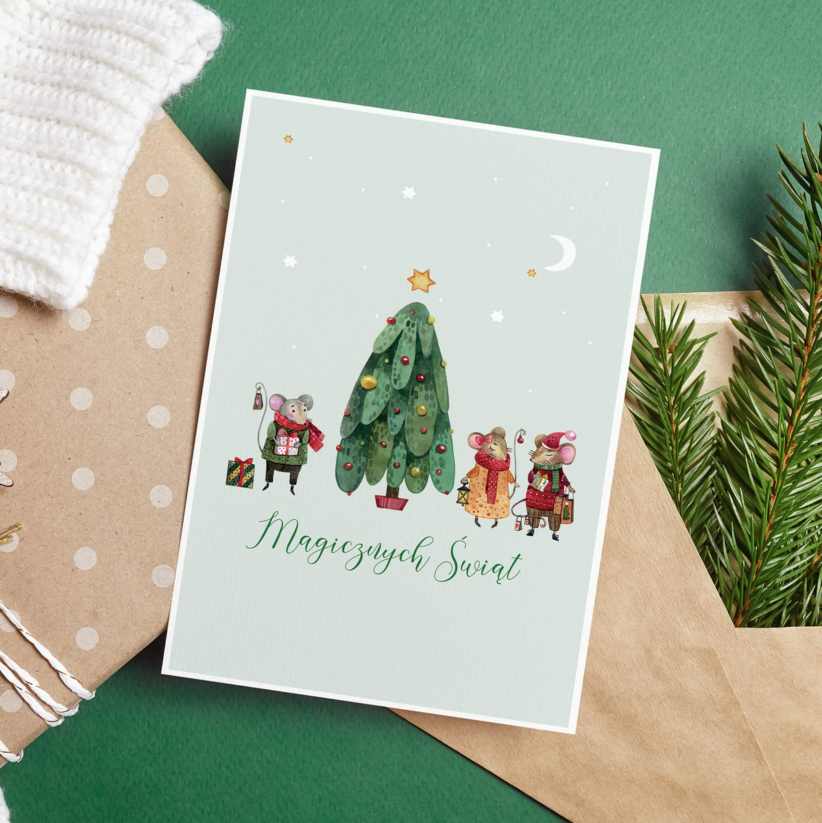 | Nazwa: | Kartka bożonarodzeniowa Myszki przy choince |