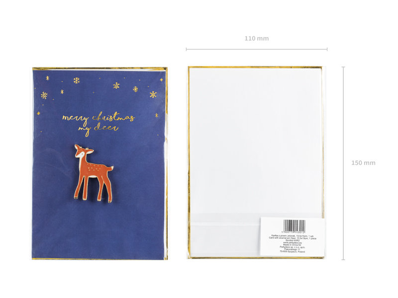 karnet okolicznościowy kolor granatowy ze złotym metalizowanym nadrukiem z pinem w kształcie jelonka i białą kopertą ze złotym metalizowanym nadrukiem wymiary kartki ok. 10.5 x 15 cm wymiary pina ...