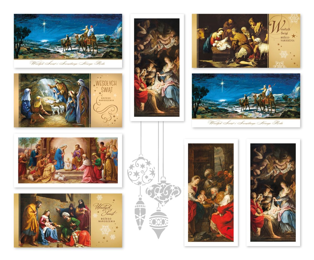 Kartki świąteczne na Boże Narodzenie Kartki świąteczne z życzeniami wewnątrz komplet 9 szt • Kartki składane• w zestawie z kopertą• wymiar 10,5 x 21 cm